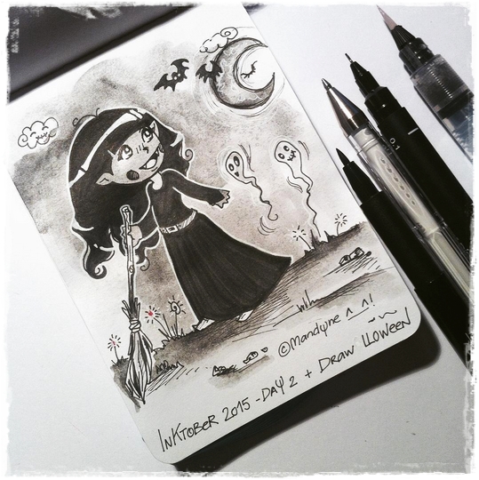 Ni une ni deux, comme d’autres artistes, je décide de les associer jusqu’au 31 octobre 2015, #Inktober feat #Drawlloween … en espérant que je tienne bon eheheheheheheh :p